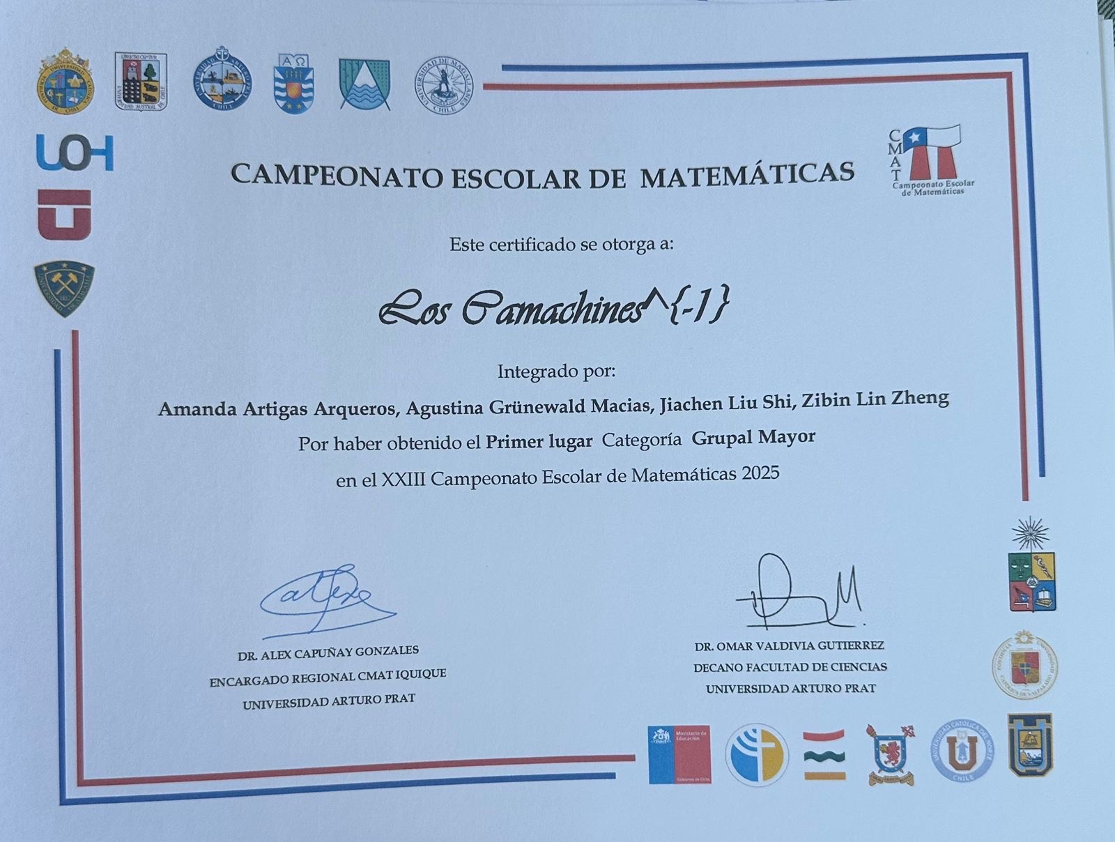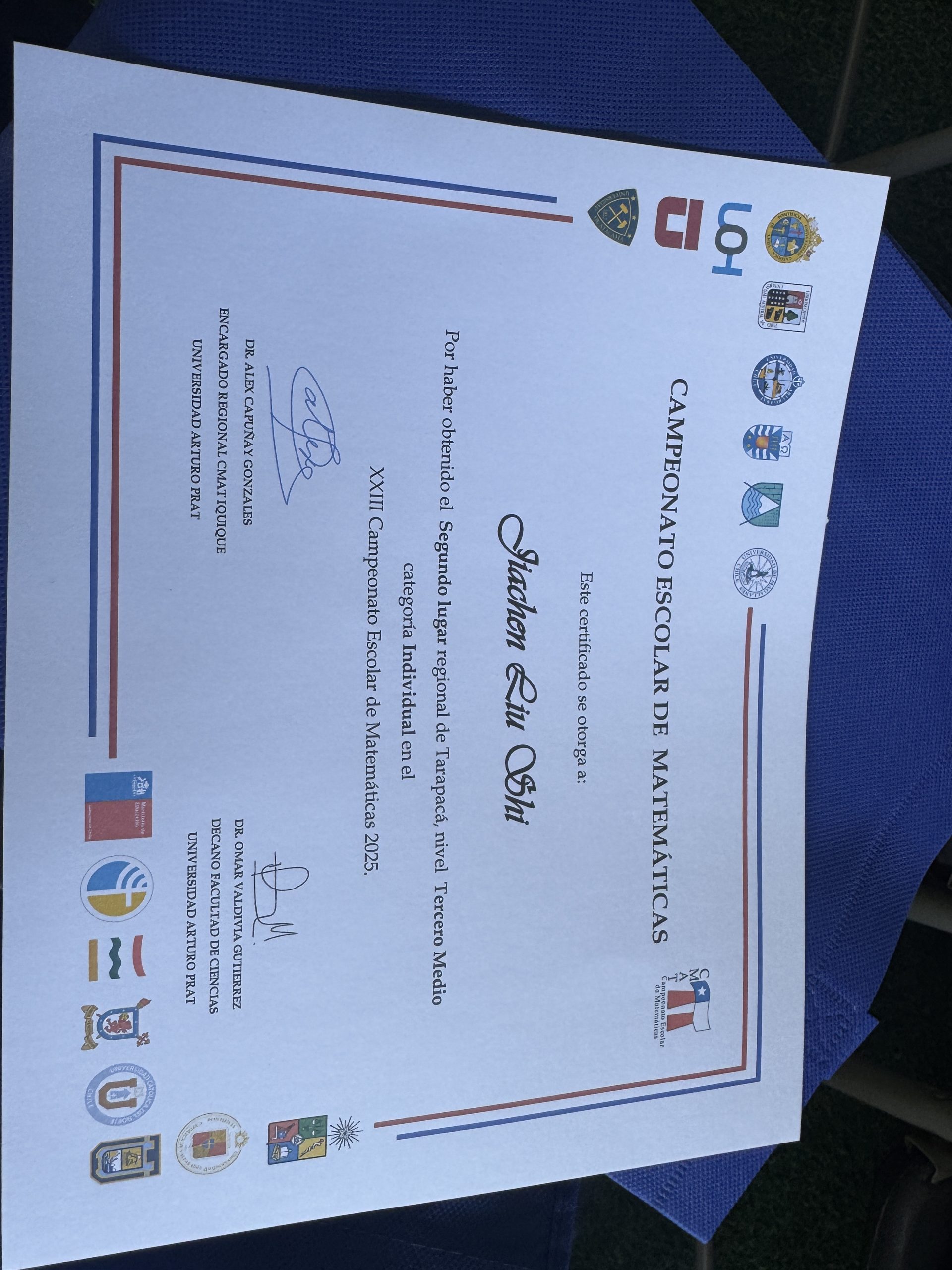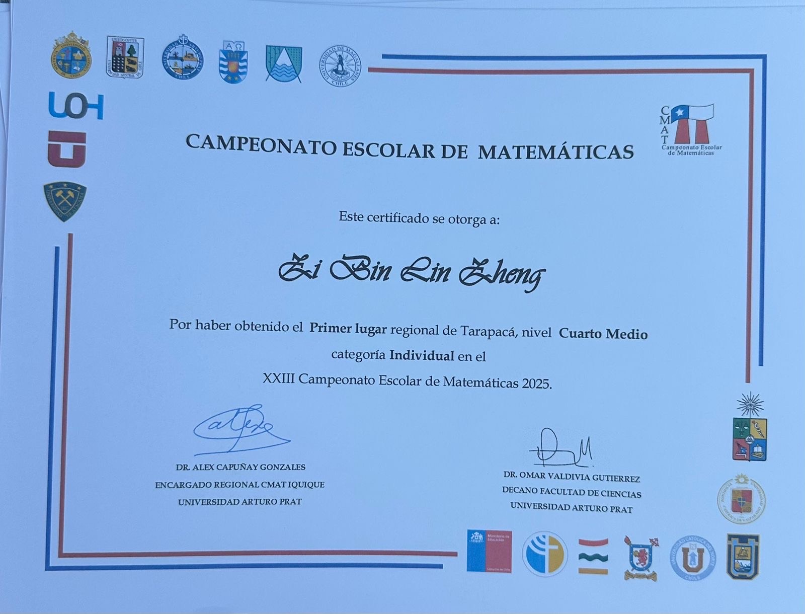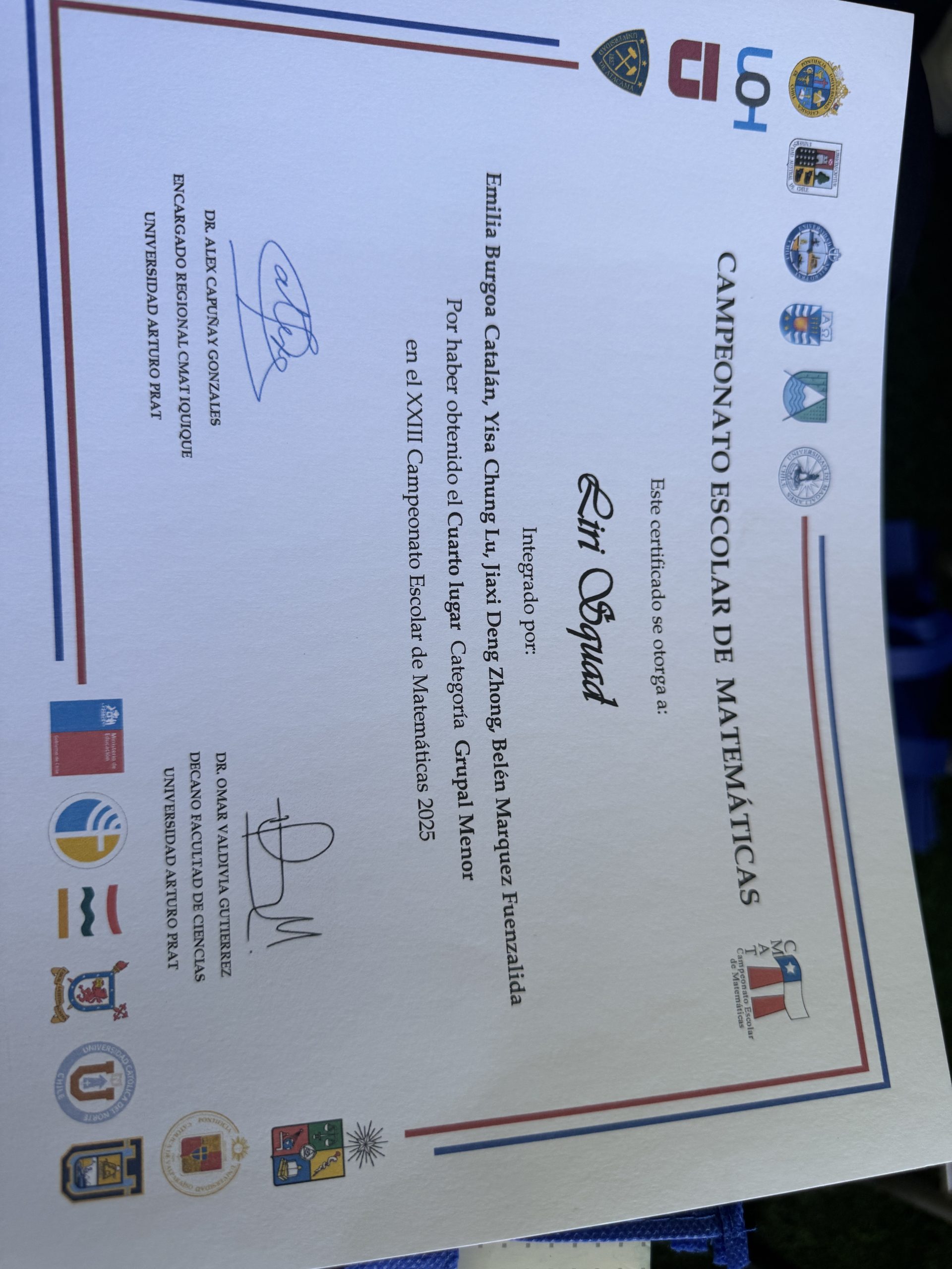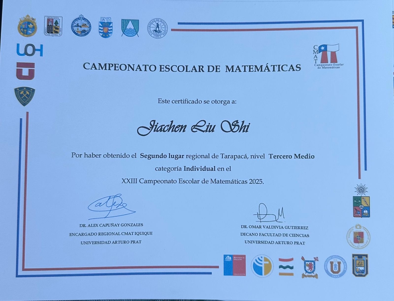 A nivel individual, destacamos a Sophie Muñoz, quien obtuvo el 4º lugar regional y 4º lugar nacional, recibiendo medalla de cobre. Jiaxi Deng alcanzó un resultado extraordinario al obtener el 1º lugar regional y 1º lugar nacional, adjudicándose la medalla de oro, un logro de gran relevancia a nivel país. Asimismo, Jiachen Liu obtuvo el 2º lugar regional y 3º lugar nacional, con medalla de bronce, mientras que Zibin Lin logró el 1º lugar regional y 4º lugar nacional, recibiendo medalla de cobre.