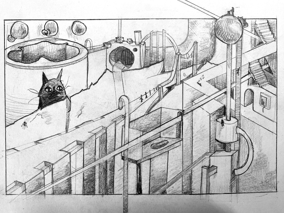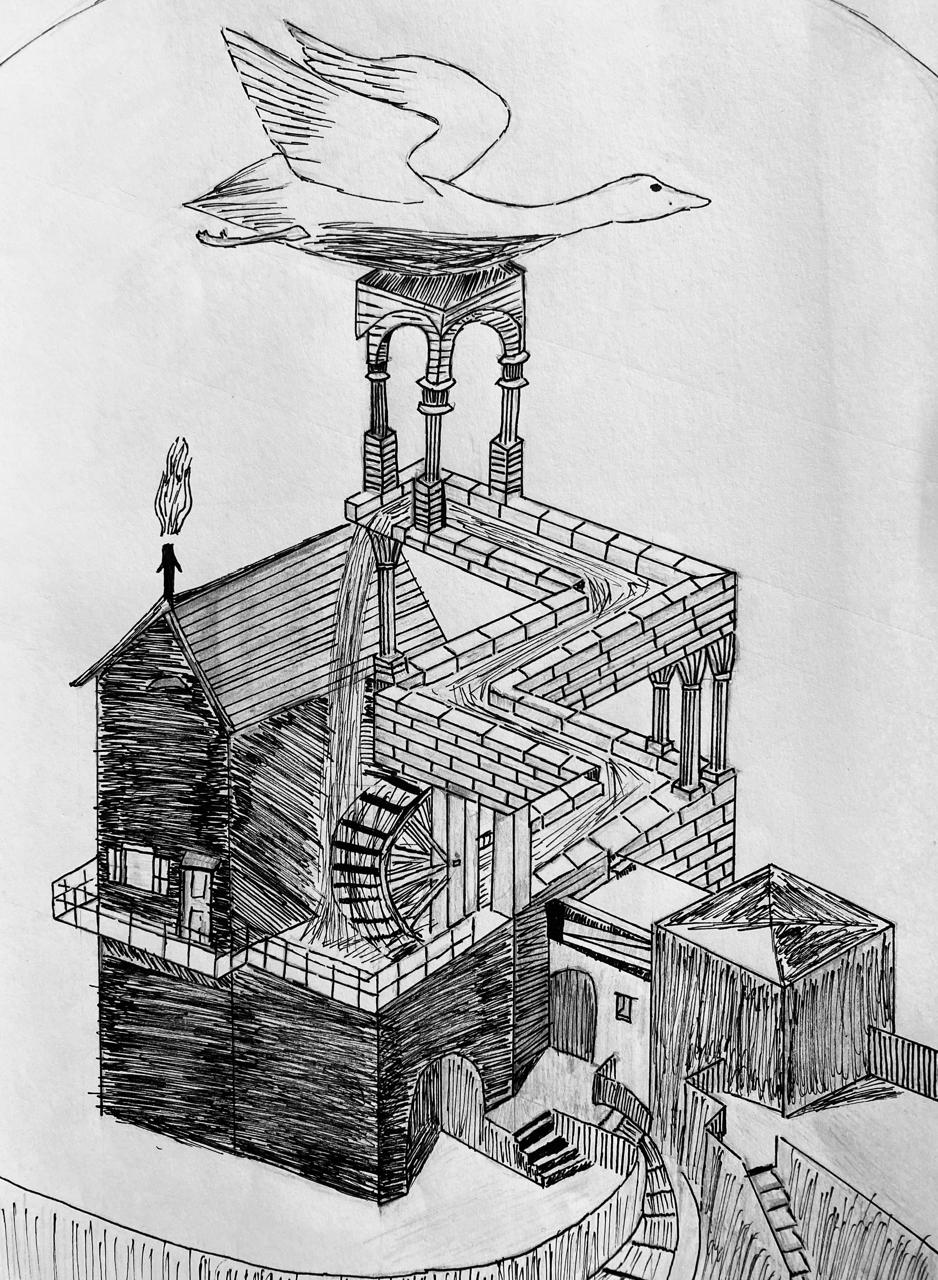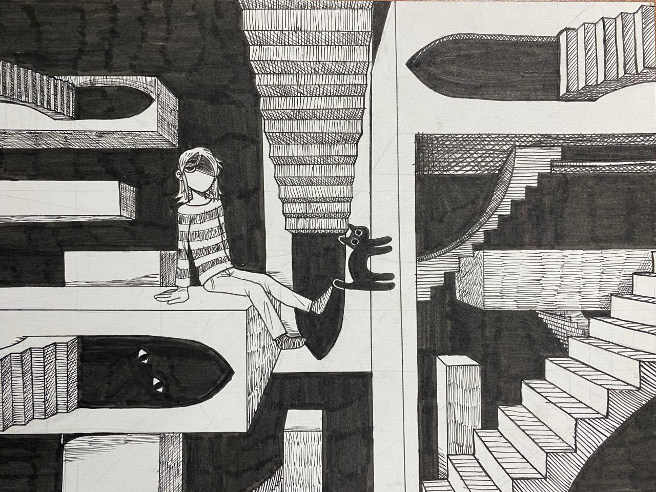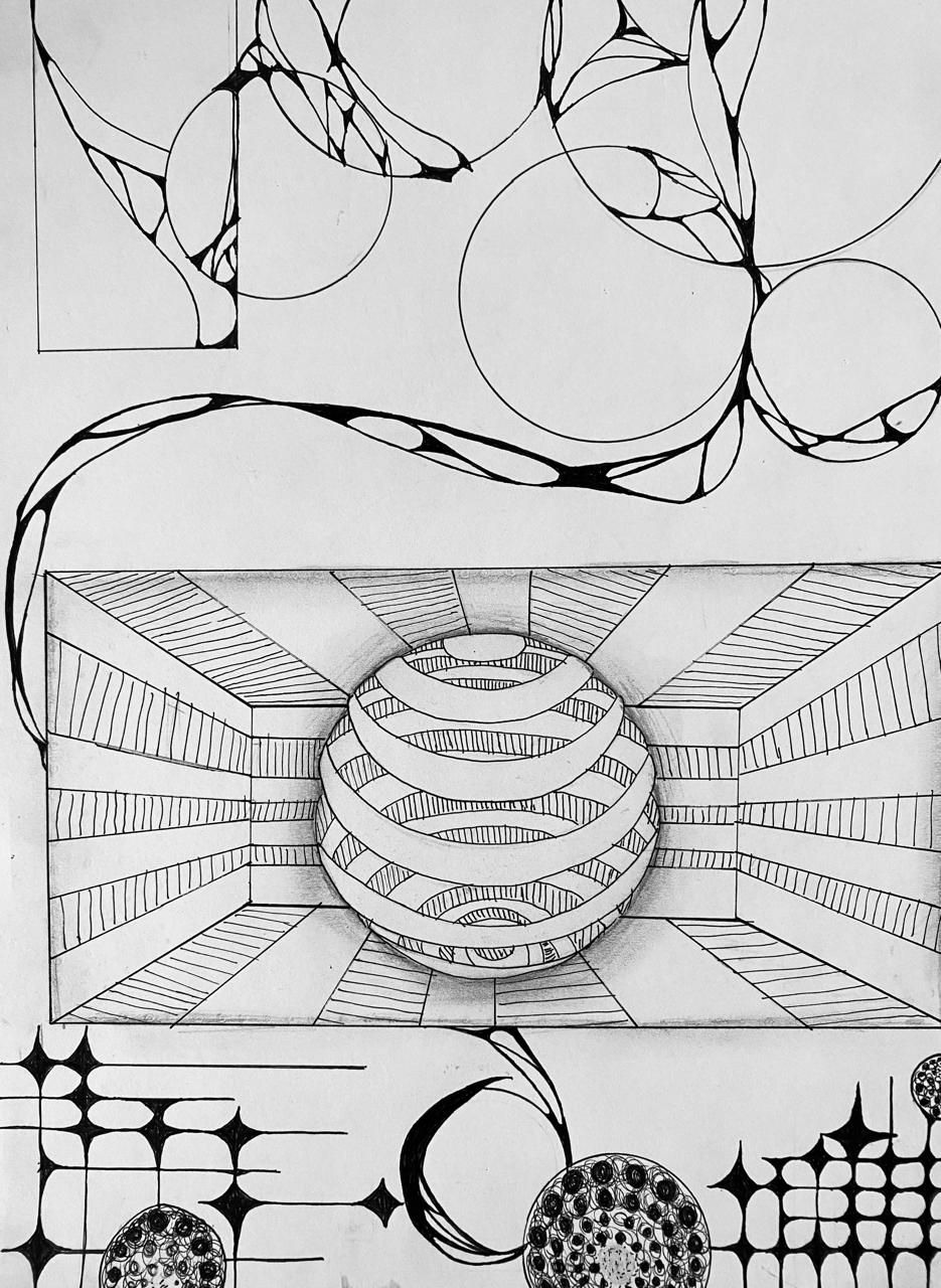 Durante el proceso, se destacó el rigor técnico y la paciencia necesaria para ejecutar trazos limpios y composiciones equilibradas. El uso del grafito permitió trabajar las sombras y profundidades, mientras que el tiralíneas otorgó la definición necesaria para que las figuras imposibles cobraran vida en el papel, demostrando un alto nivel de competencia en el manejo de herramientas profesionales.
