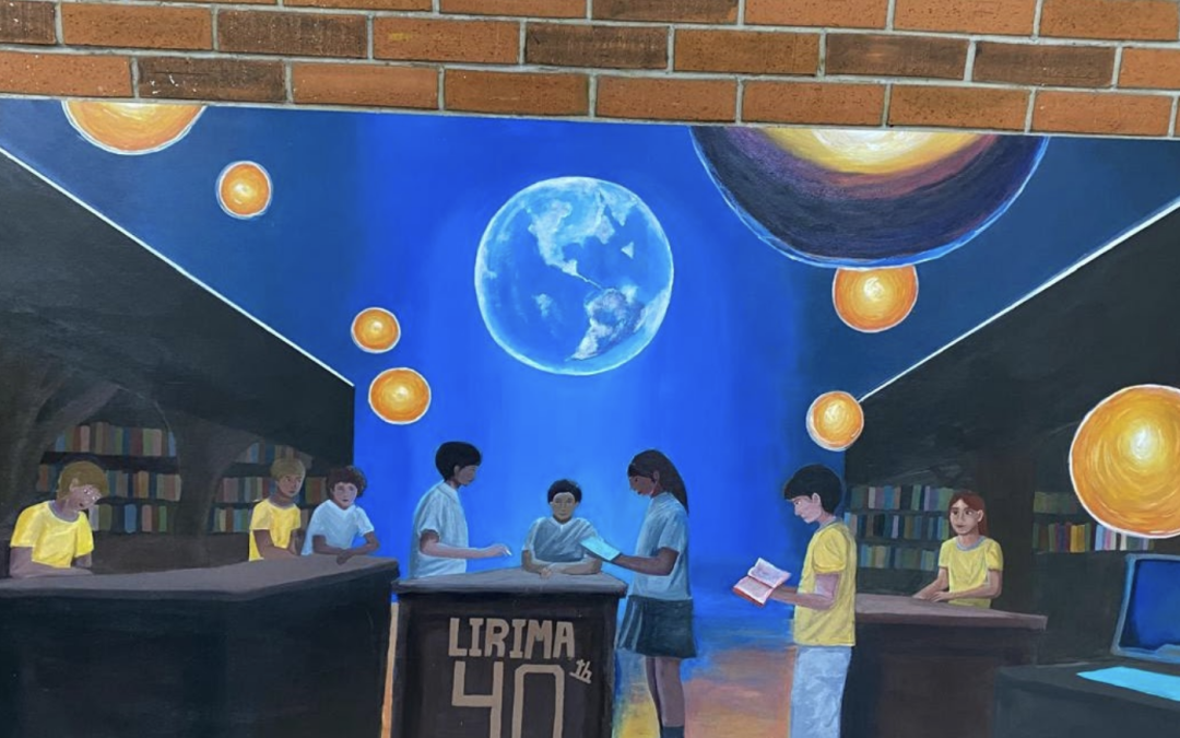 En el marco de la conmemoración de los 40 años de nuestro Colegio Lirima, se inauguró un mural que representa una mirada al futuro desde la creatividad y la imaginación de tres talentosas estudiantes: Xiaoqin He y Paz Aguirre de 3°MB, e Isabella Montealegre de 3° Medi A.